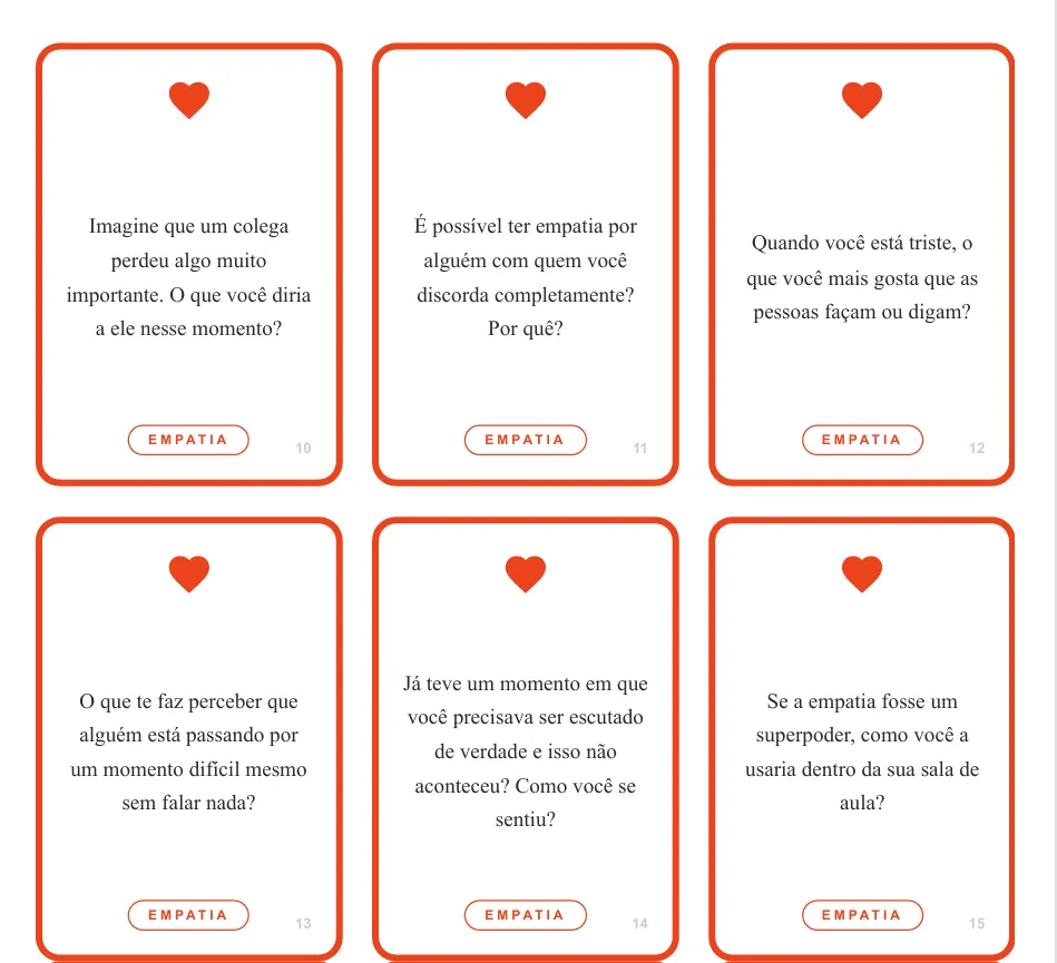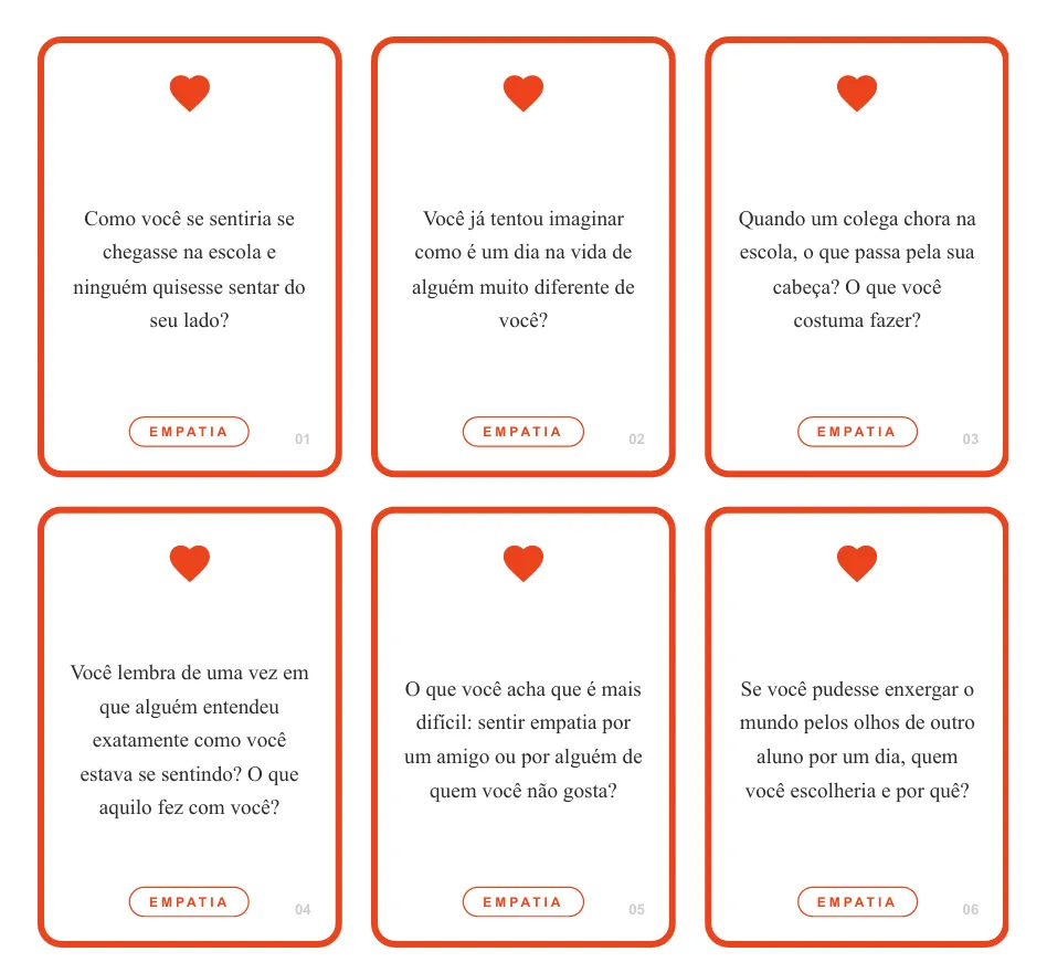 Os flashcards incentivam os estudantes a se colocarem no lugar do outro e refletirem sobre suas ações.